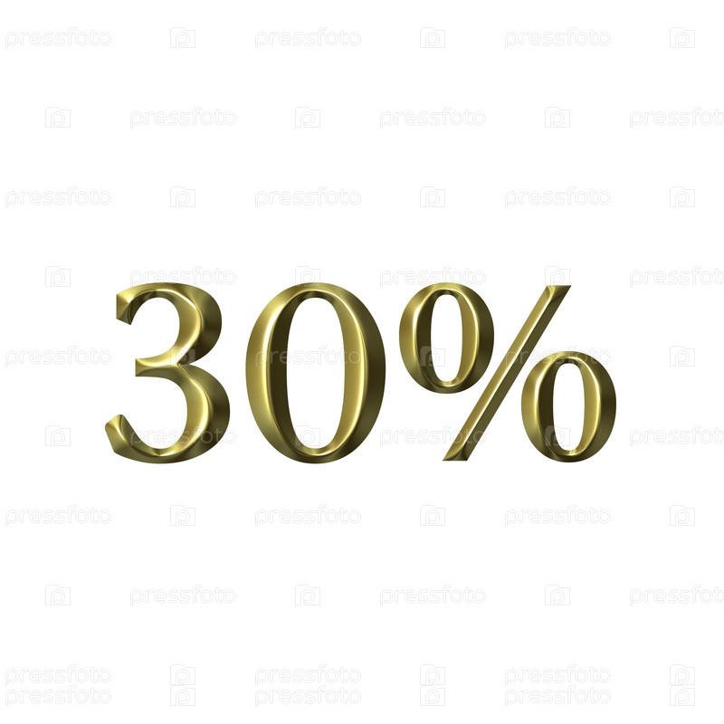 Золотой знак "30 процентов" на белом фоне