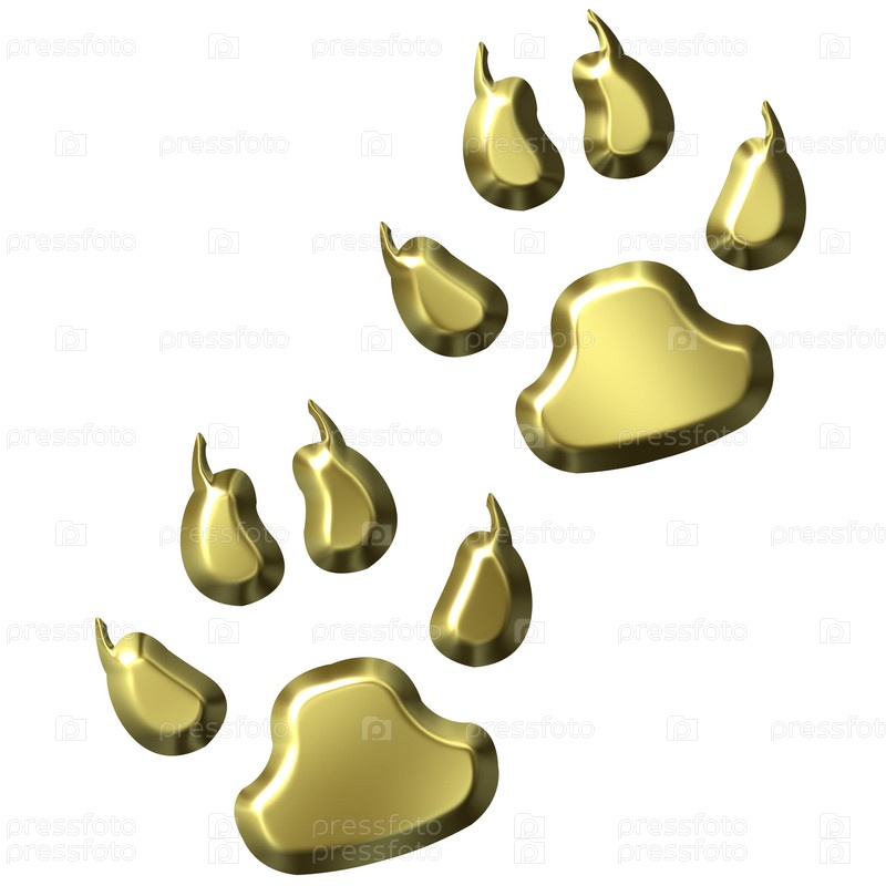 3D золотые следы лап животного, изолированные на белом фоне