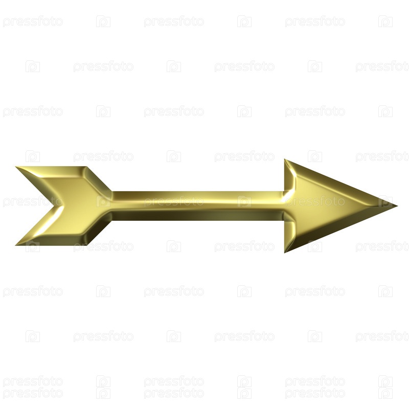 3D золотая стрелка, изолированная на белом фоне