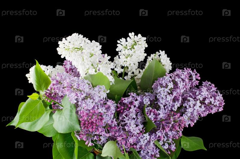 Красивый букет сирени на черном фоне