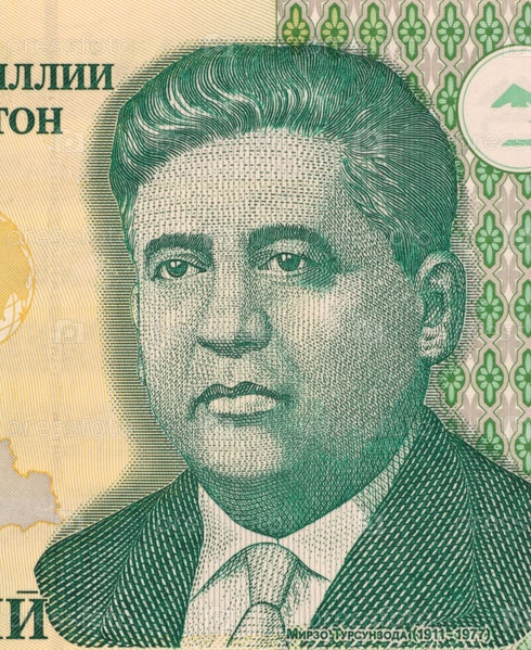 Мирзо Турсунзаде (1911-1977) на 1 сомони 2000 года, Таджикистан