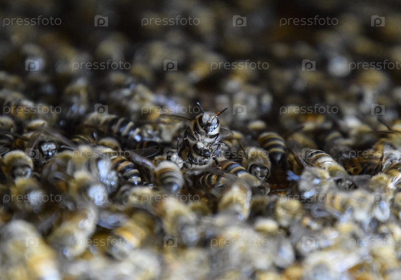 Плотное скопление пчел в гнезде