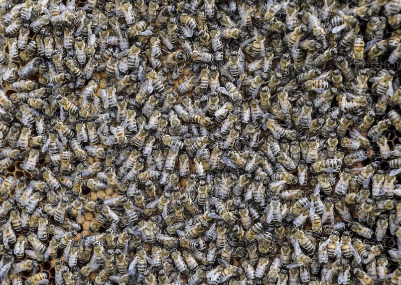 Плотное скопление пчел. Пчелиный рой