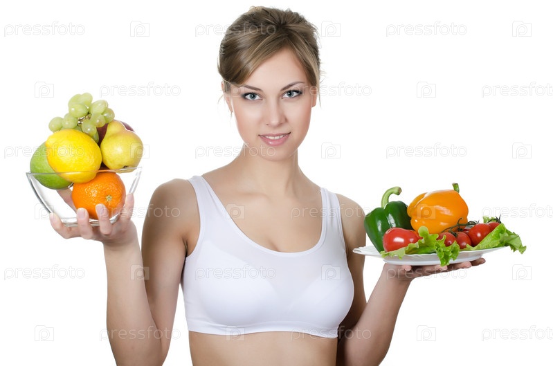 Красивая девушка с фруктами и овощами