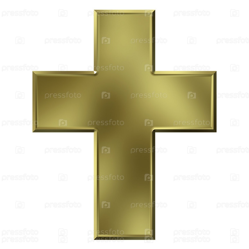 3D золотой крест, изолированный на белом фоне