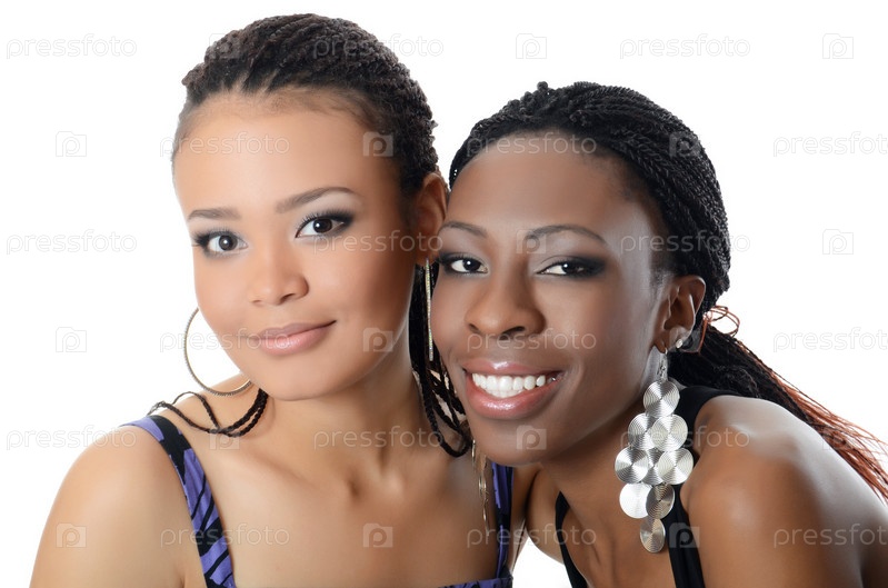Две темнокожие девушки на белом фоне