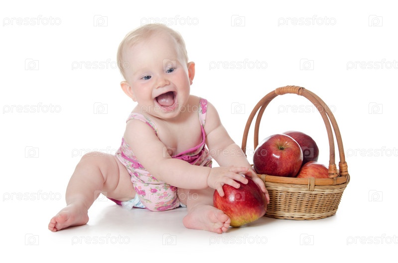 Маленький ребенок с красными яблоками