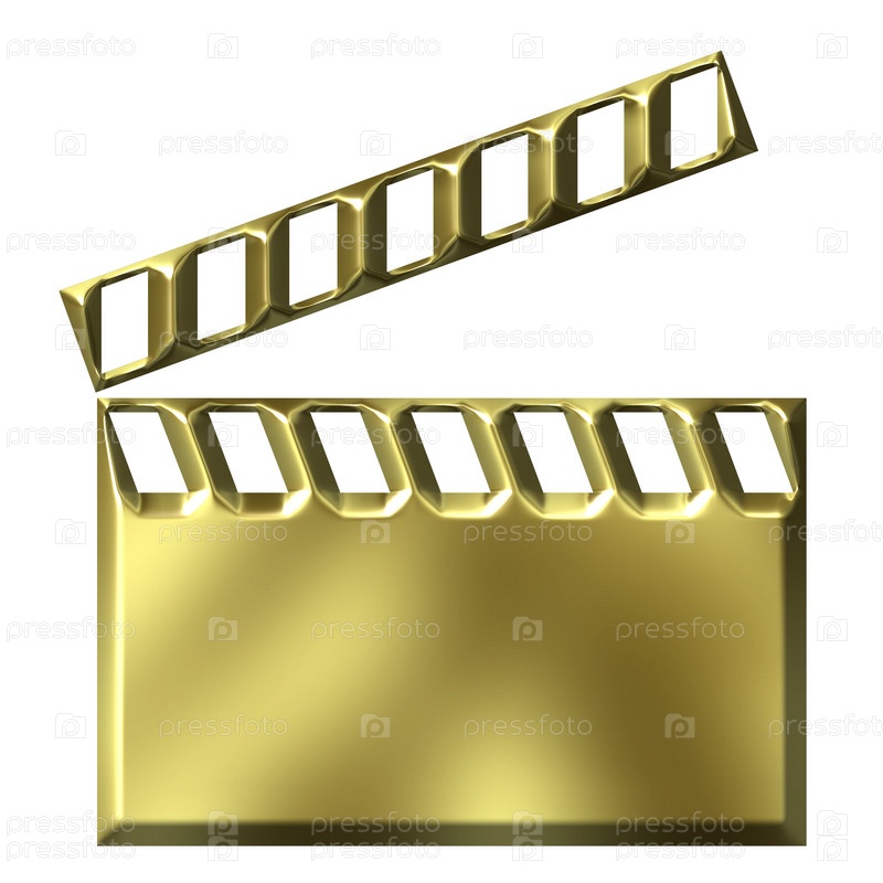 3D золотой значок хлопушки, изолированный на белом фоне