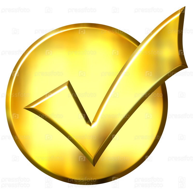 3D, золотая галочка, изолирована на белом фоне