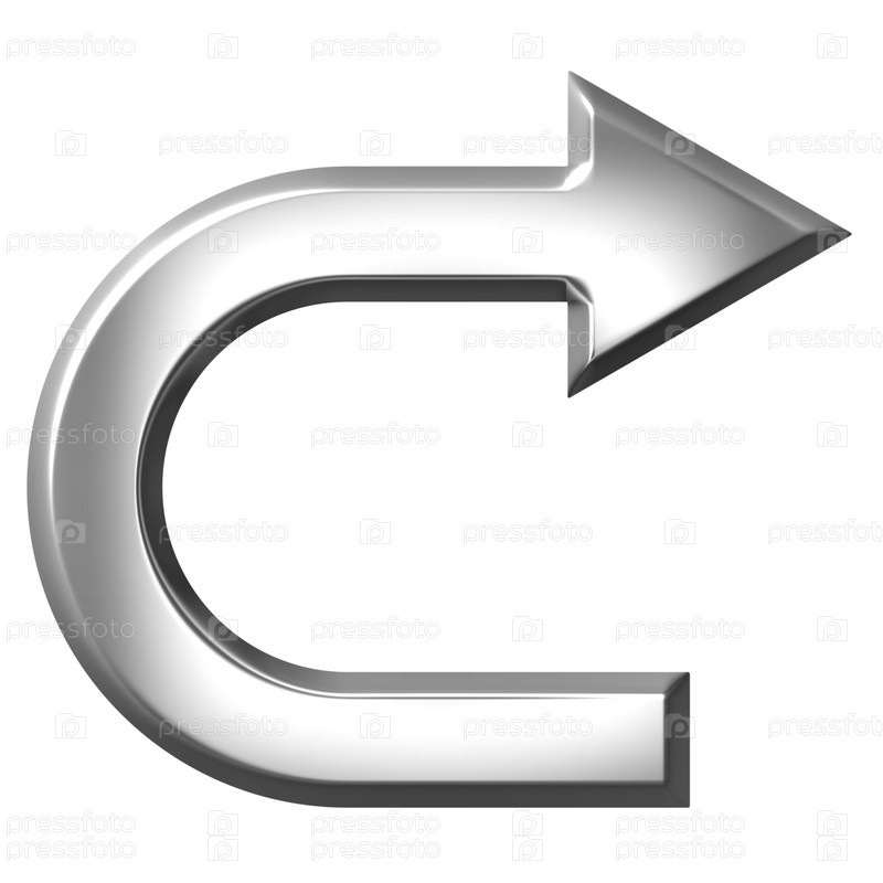 3D, серебристая стрелка, изолированная на белом фоне