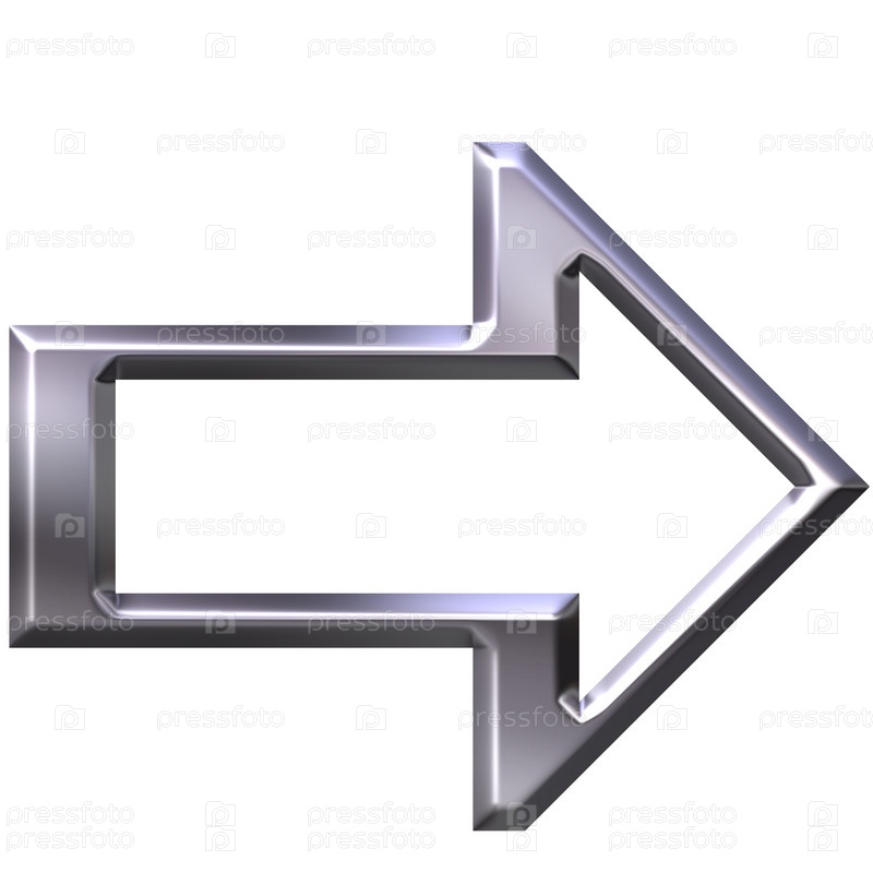 3D, серебристая стрелка, изолированная на белом фоне