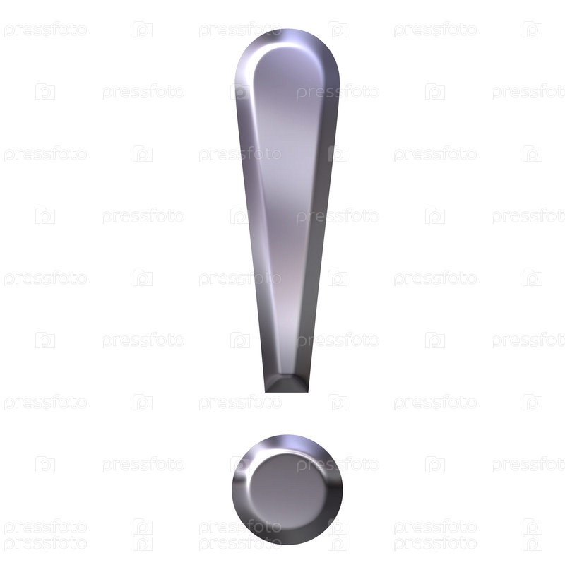 3D серебряный восклицательный знак, изолированный на белом фоне