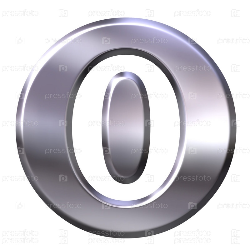 3D серебряный ноль на белом фоне