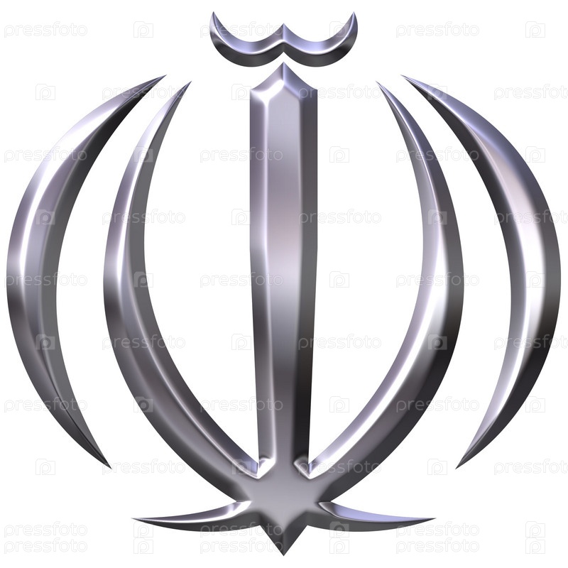 3D, серебряный герб Ирана, изолирован на белом фоне