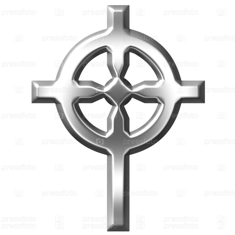 3D, серебряный кельтский крест, изолирован на белом фоне