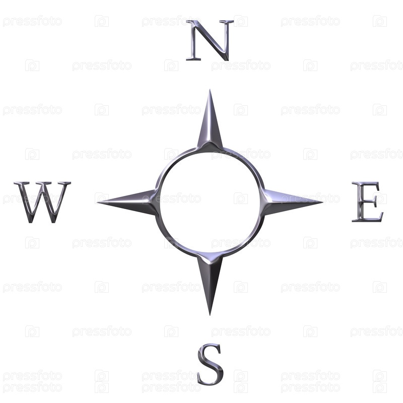 3D, серебряный компас, изолирован на белом фоне