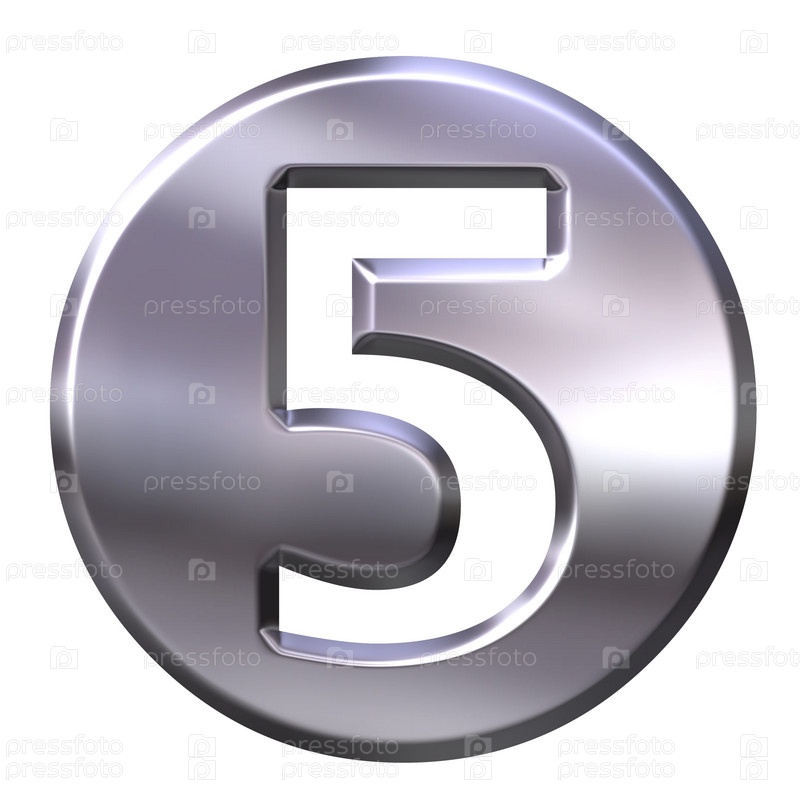 Серебряная кнопка с цифрой 5 на белом фоне