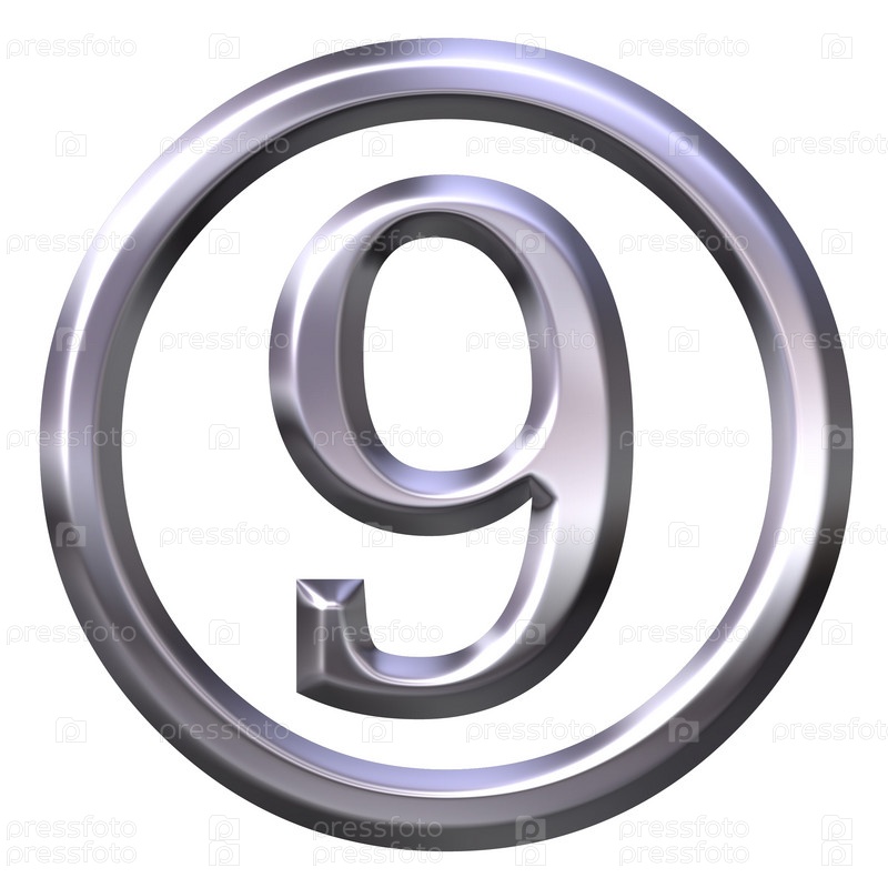 3D серебряная цифра 9 изолирована на белом фоне
