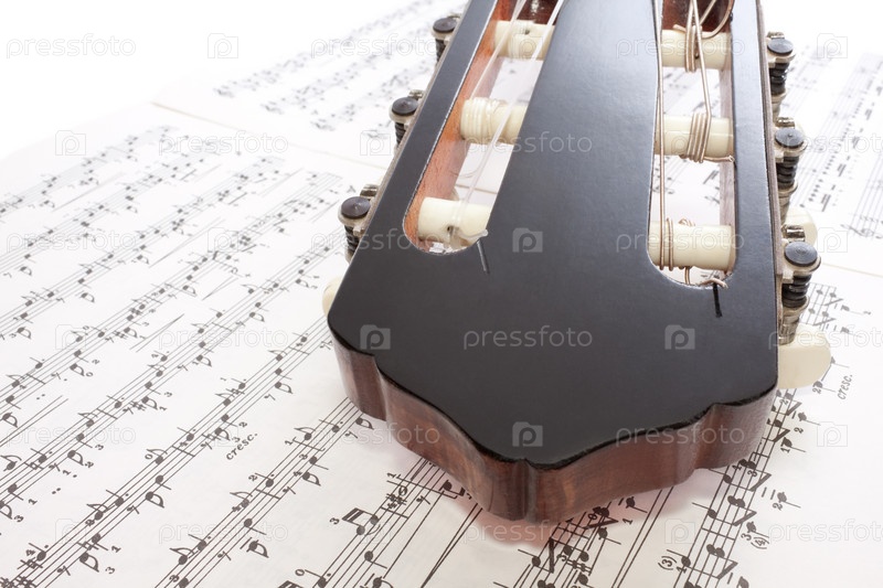 Гриф гитары на музыкальных нотах