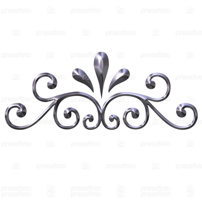 3D, серебряный орнамент, изолирован на белом фоне