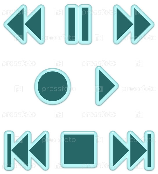 стеклянные аудиокнопки цвета морской волны, изолированные на белом