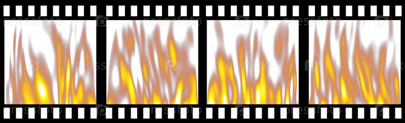 Горящая кинопленка, изолированная на белом фоне