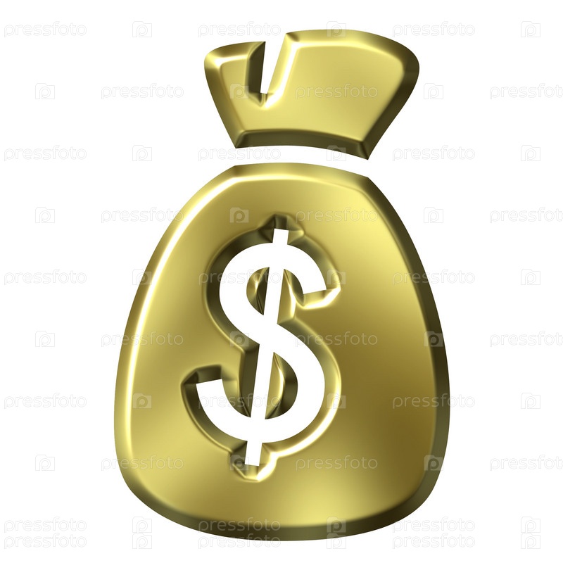 3D золотой мешок с деньгами, изолированный на белом фоне