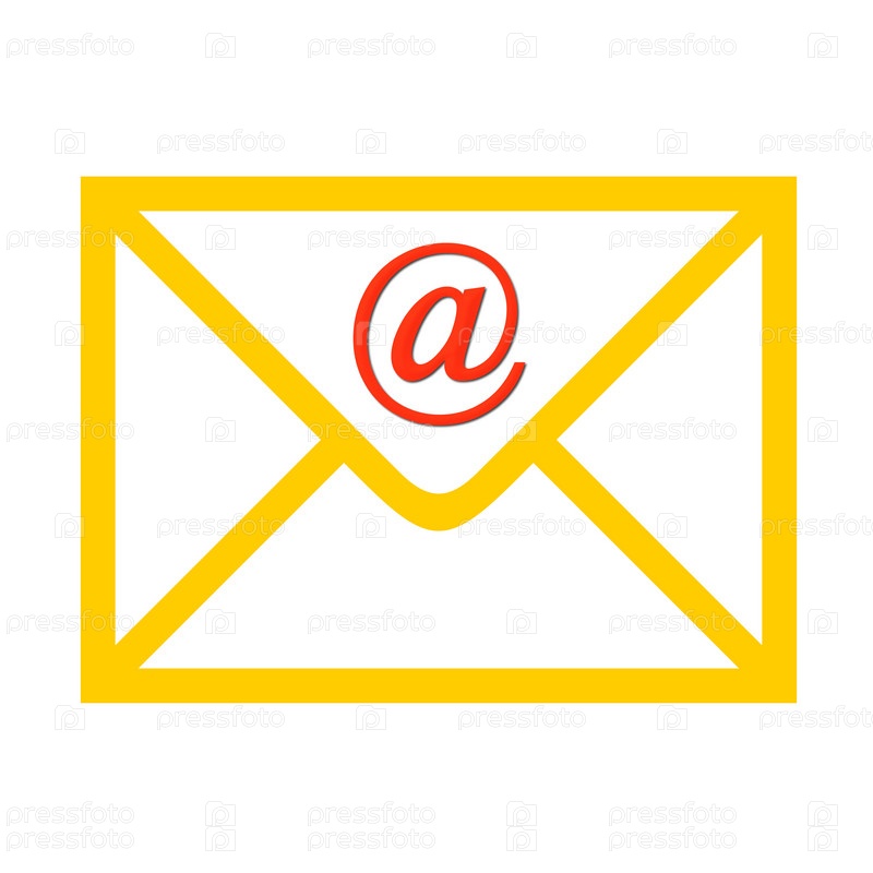 Конверт с символом электронной почты на белом фоне