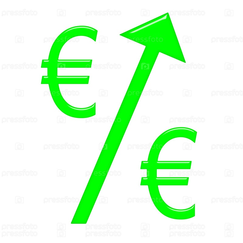 Концепция роста курса евро, изолированная на белом