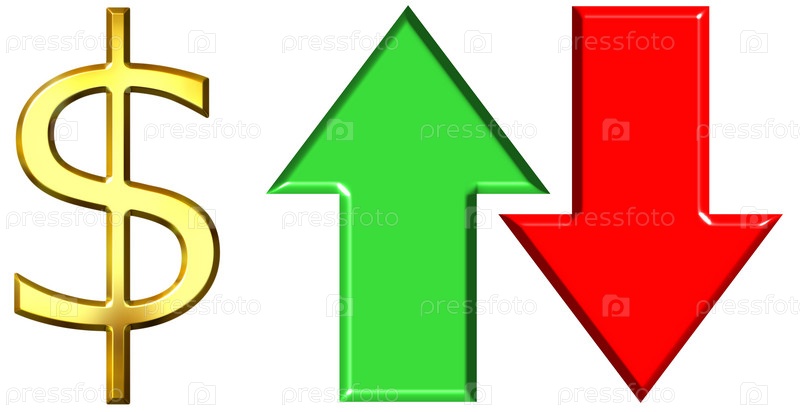 Повышение и падение курса доллара, изоляция на белом