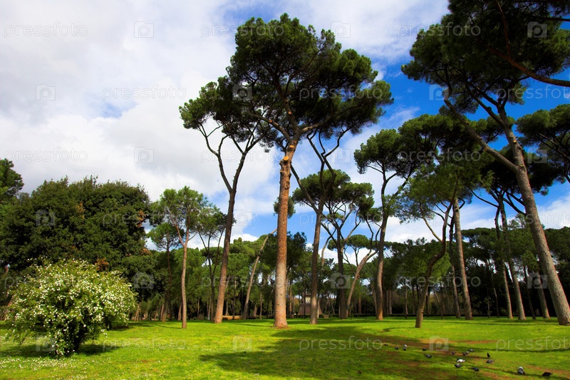 Голубое небо и высокие сосны в Риме
