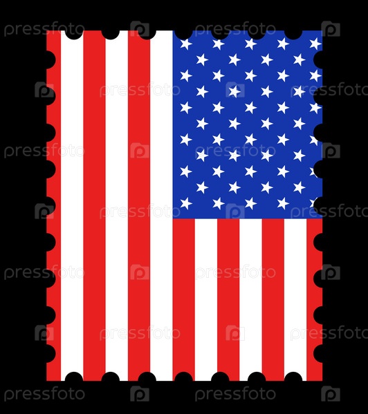 Марка с флагом США на черном фоне