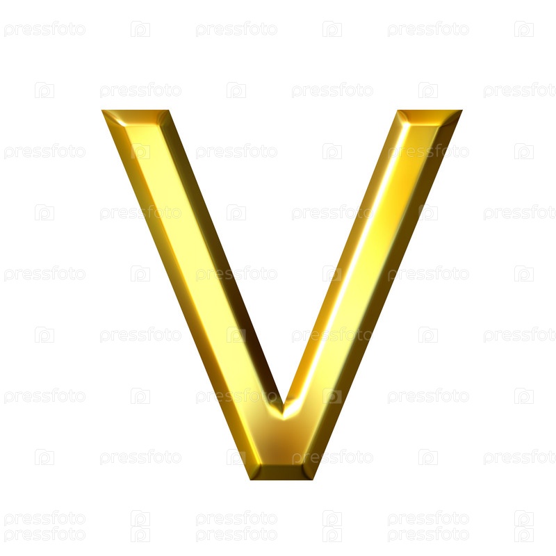 3D золотая буква V на белом фоне