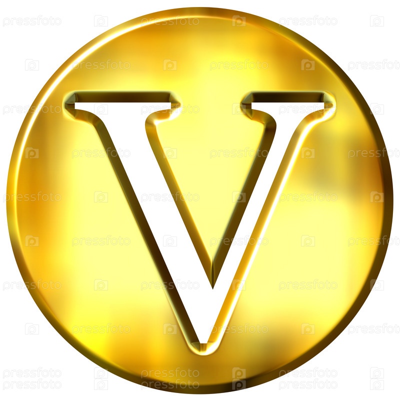 3D золотая буква V на белом фоне
