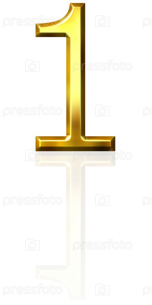 3D золотой номер 1 с отражением на белом фоне