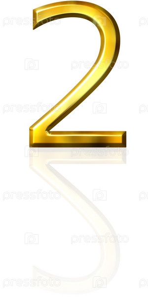 3D золотой номер 2 с отражением на белом фоне