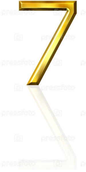 3D золотой номер 7 с отражением на белом фоне