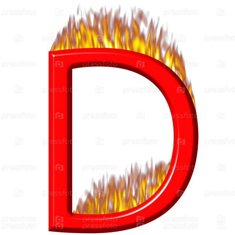 3D буква D в огне на белом фоне