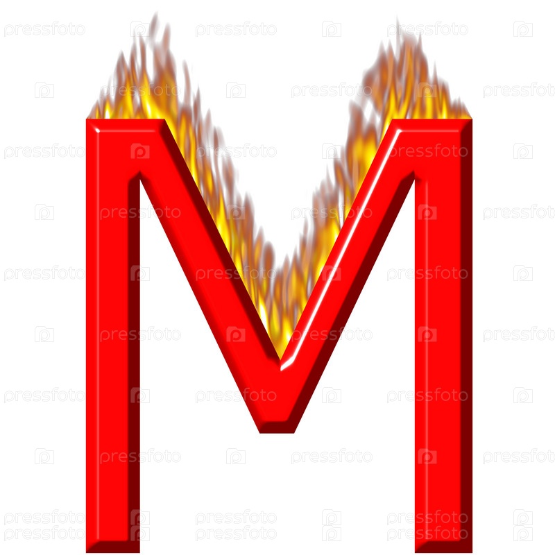 3D буква M в огне на белом фоне