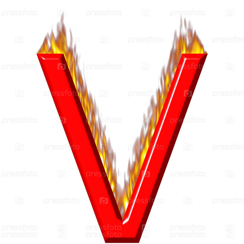 3D буква V в огне на белом фоне