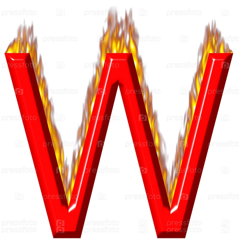 3D буква W в огне на белом фоне
