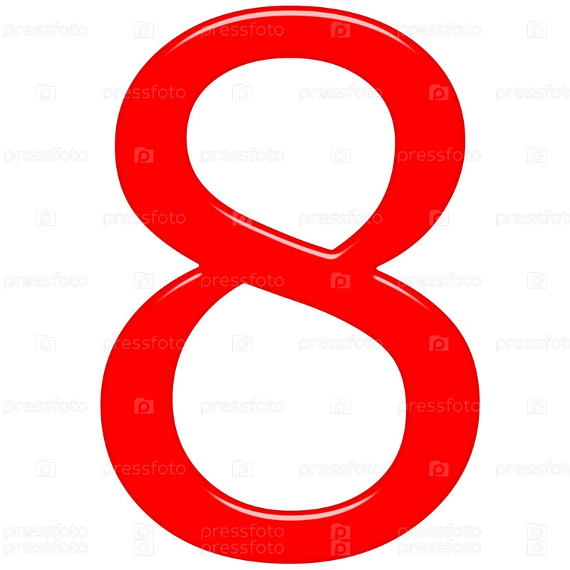 3D красное число 8 на белом фоне