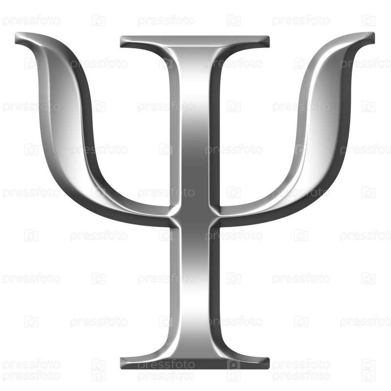 3D серебряная греческая буква пси на белом фоне