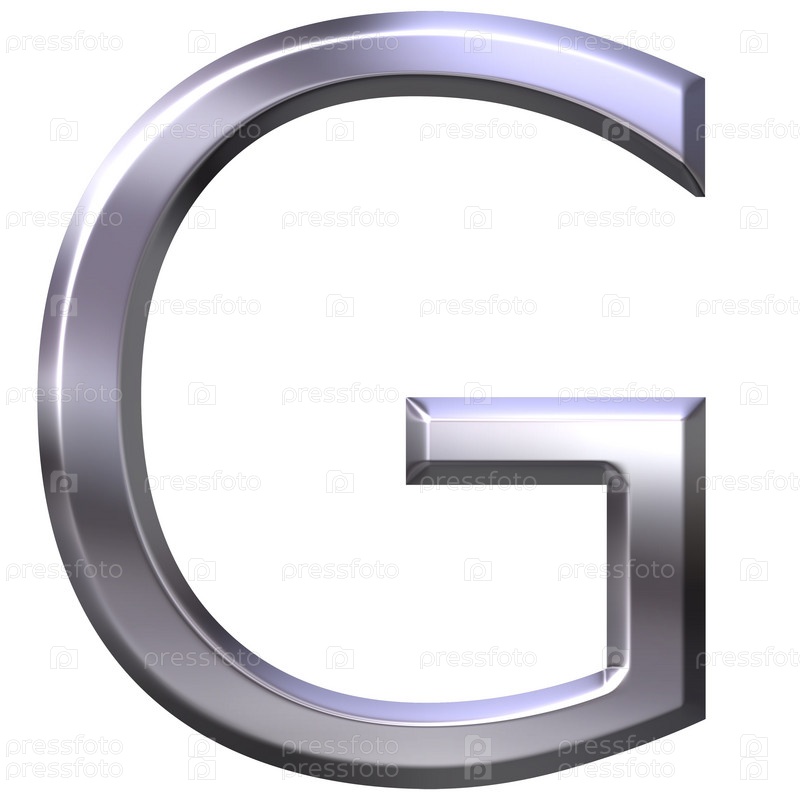 3D серебряная буква G на белом фоне
