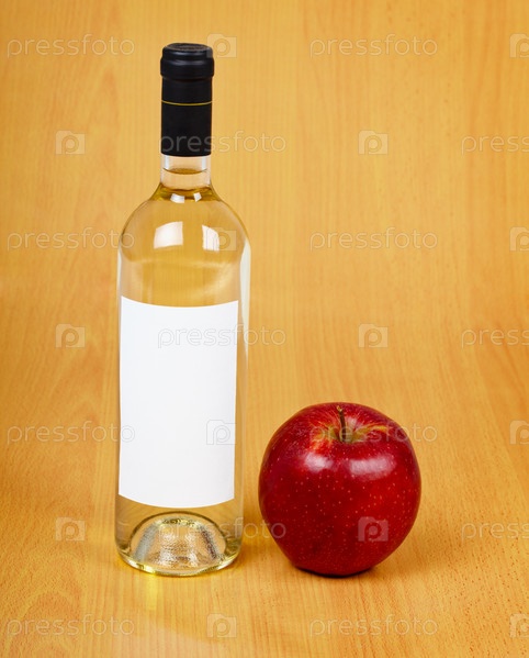 Бутылка сидра на деревянном столе