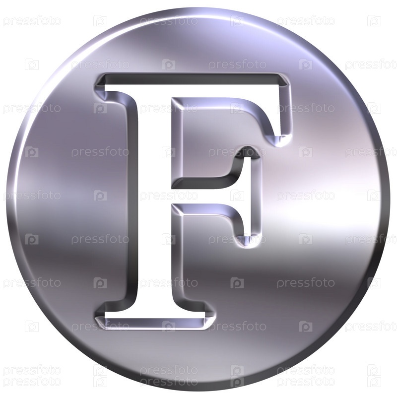 3D серебряная буква F на белом фоне