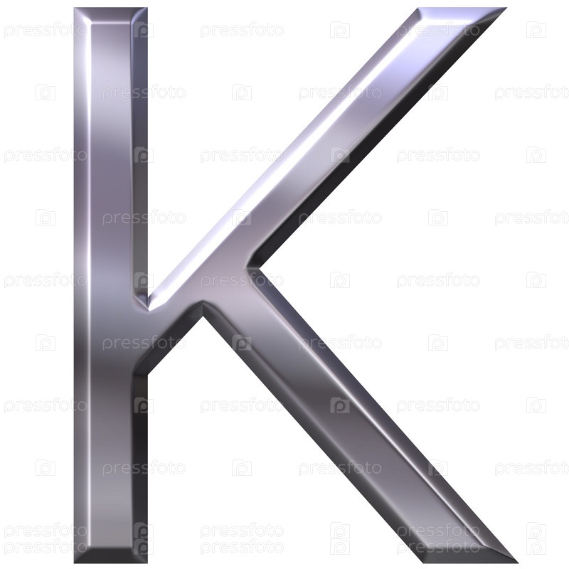 3D серебряная буква K на белом фоне