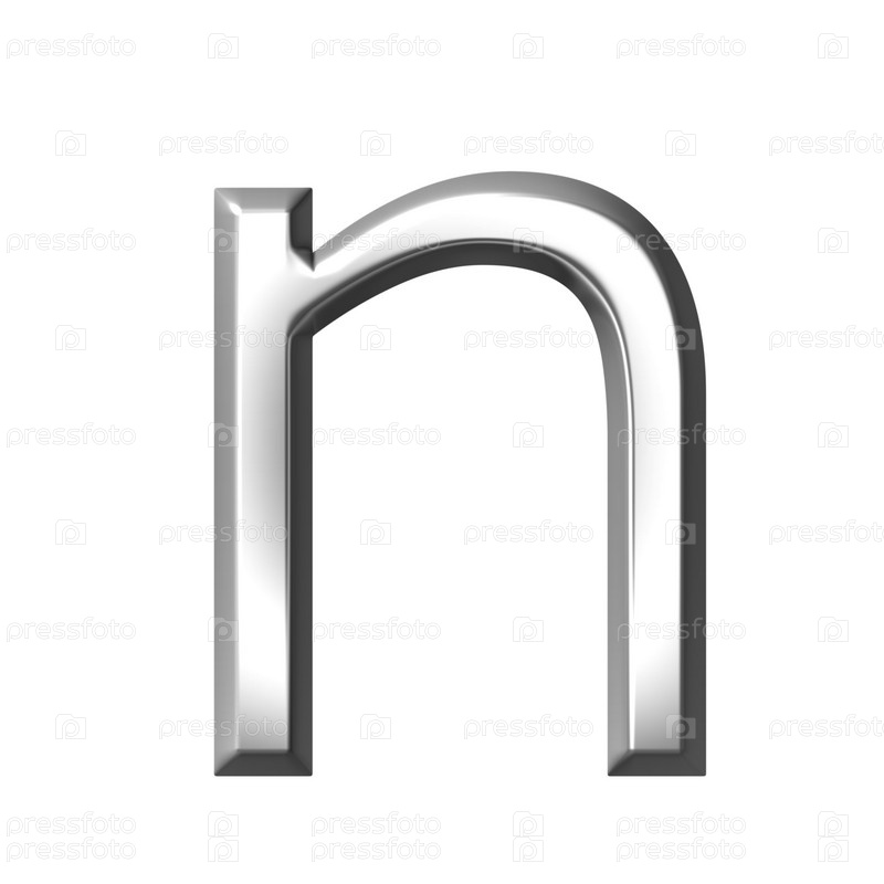 3D серебряная буква n на белом фоне