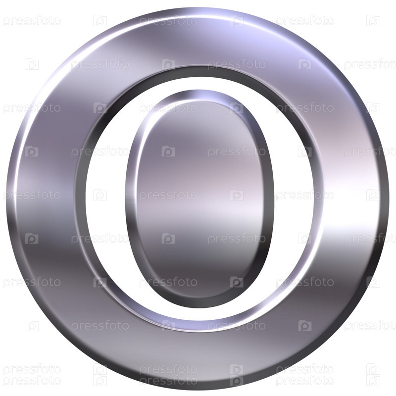 3D серебряная буква o на белом фоне