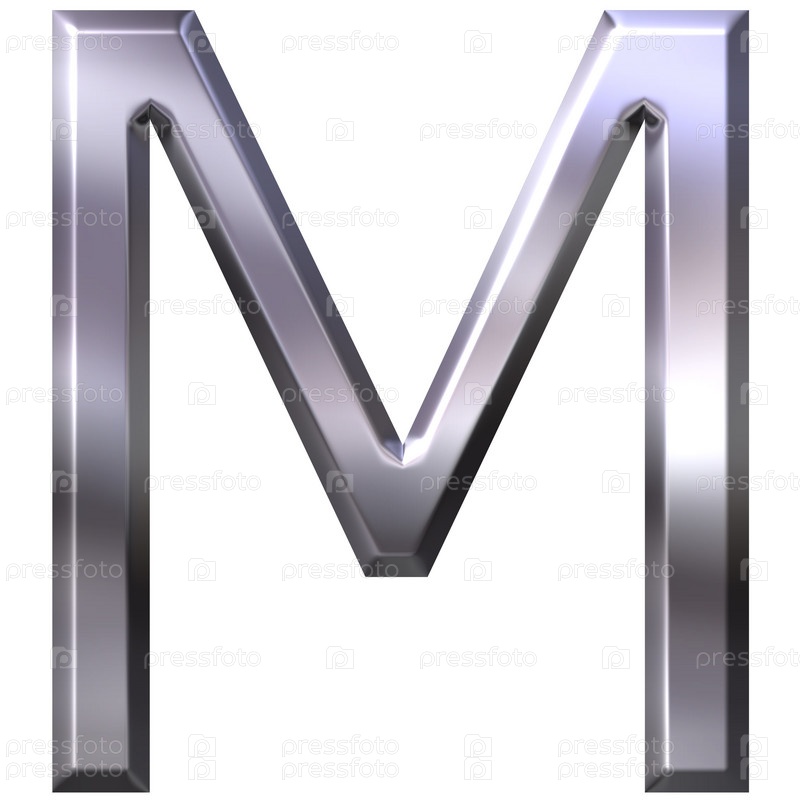 3D серебряная буква M на белом фоне
